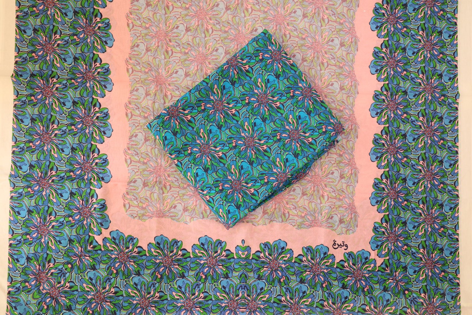 قماش فيروزي اخضر مزهر يتميز بتناسق ألوانه الزاهية ونقوشه المزهرة التي تضيف لمسة حيوية وطابعًا أنيقًا على مختلف التصاميم. يجمع بين الجاذبية البصرية وجودة الخامة ليمنحك تجربة استخدام عملية ومميزة.